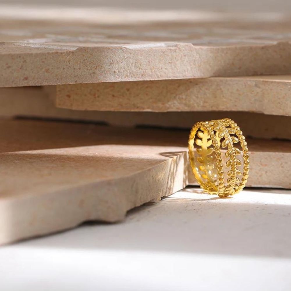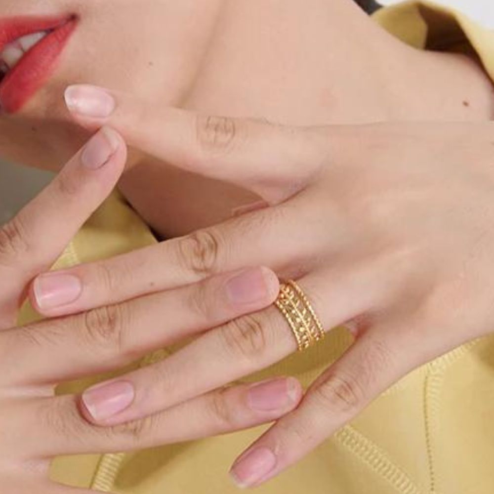 Um Anel Folha Ajustável Banhado em Ouro 18K é uma peça encantadora que combina elegância e versatilidade. Com um design de folha, o anel é ajustável para se adaptar ao tamanho desejado. Feito com uma base de metal banhada em ouro 18 quilates, ele oferece um visual sofisticado e brilhante. A folha adiciona um toque de natureza e estilo orgânico à joia, tornando-a uma escolha delicada e moderna para diversas ocasiões. Hipoalergênico livre de níquel e chumbo.