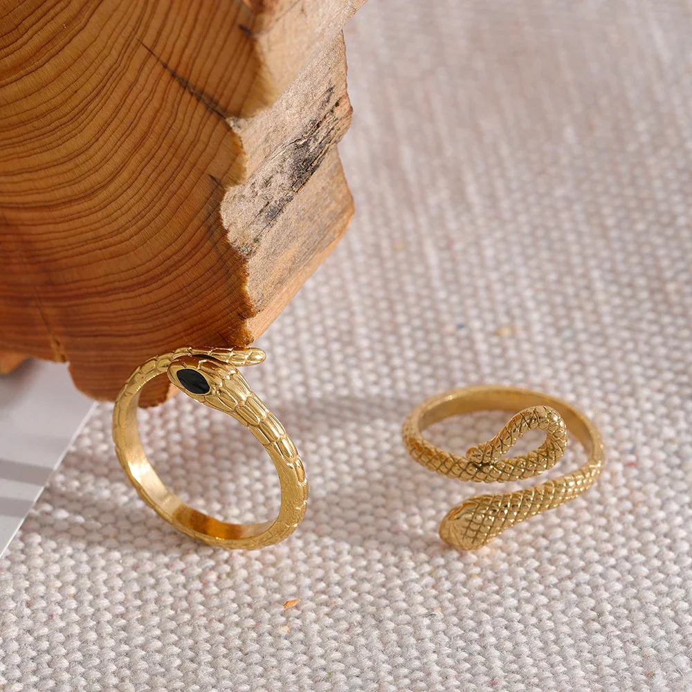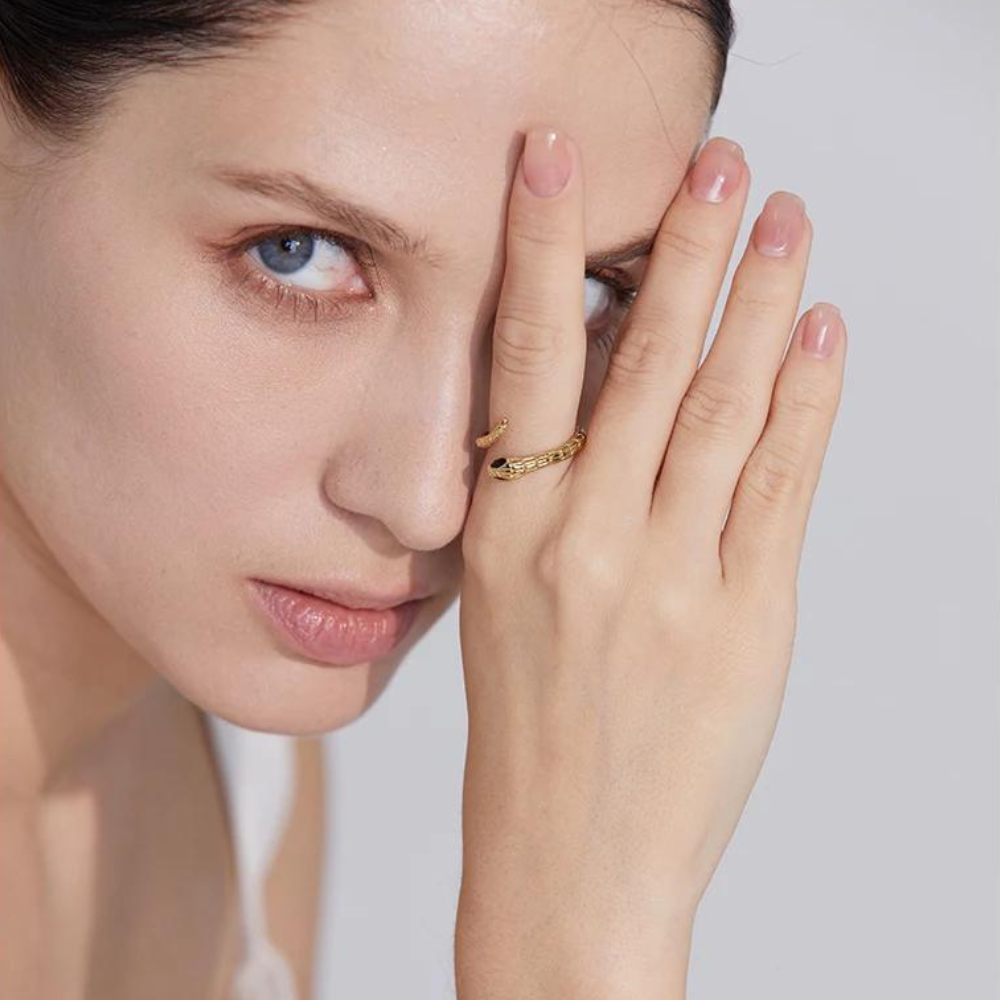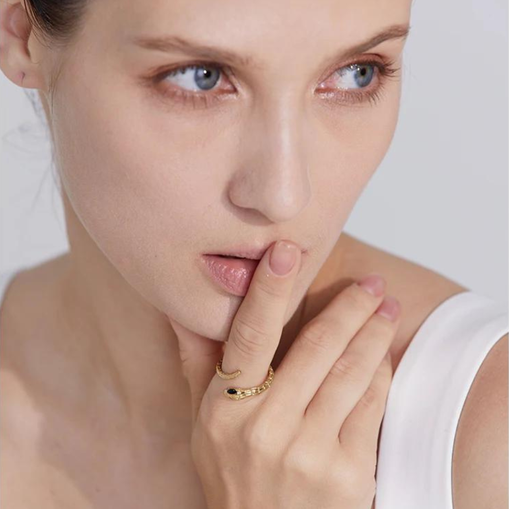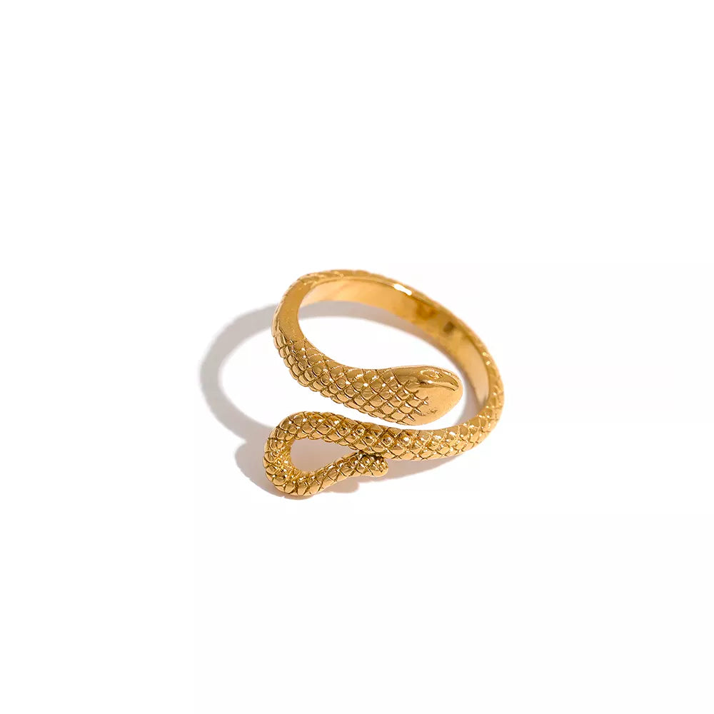 O Anel Serpente é uma peça elegante e intrigante, inspirada na forma sinuosa da serpente. Este anel transmite poder e mistério, adornado com detalhes sutis que capturam a essência dessa figura icônica. Sua presença destaca-se como um símbolo atemporal de estilo e significado, perfeito para elevar qualquer visual com um toque de sofisticação e mistério.