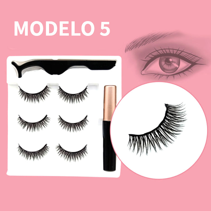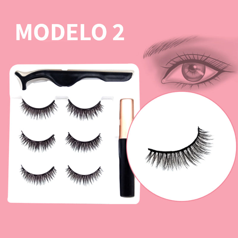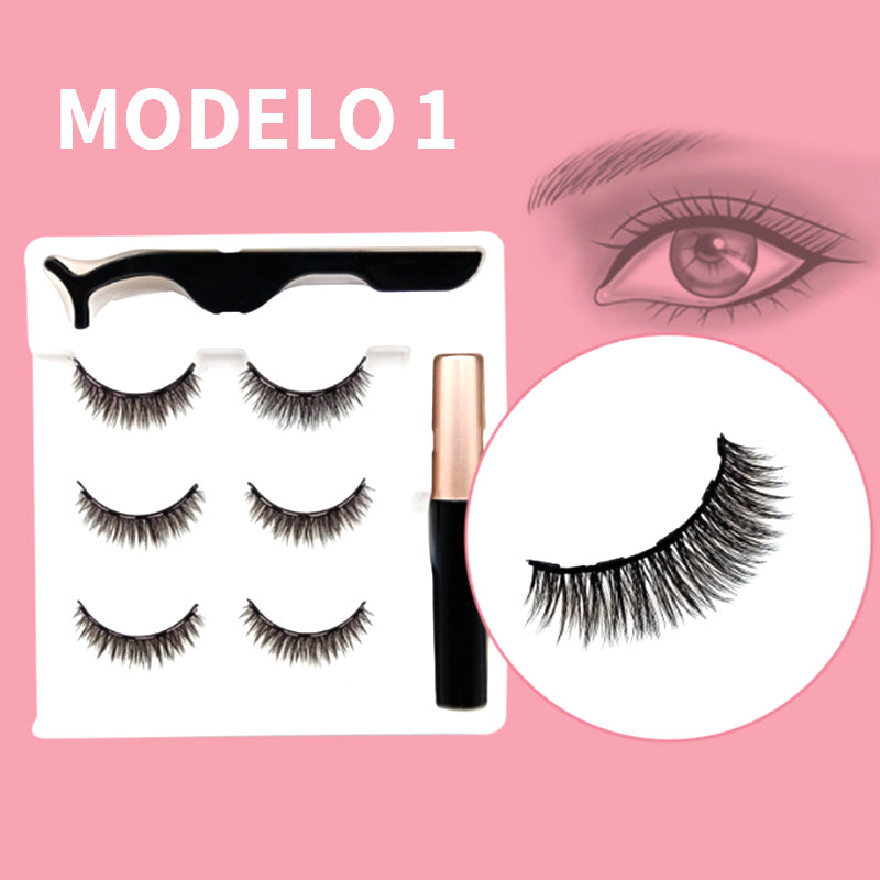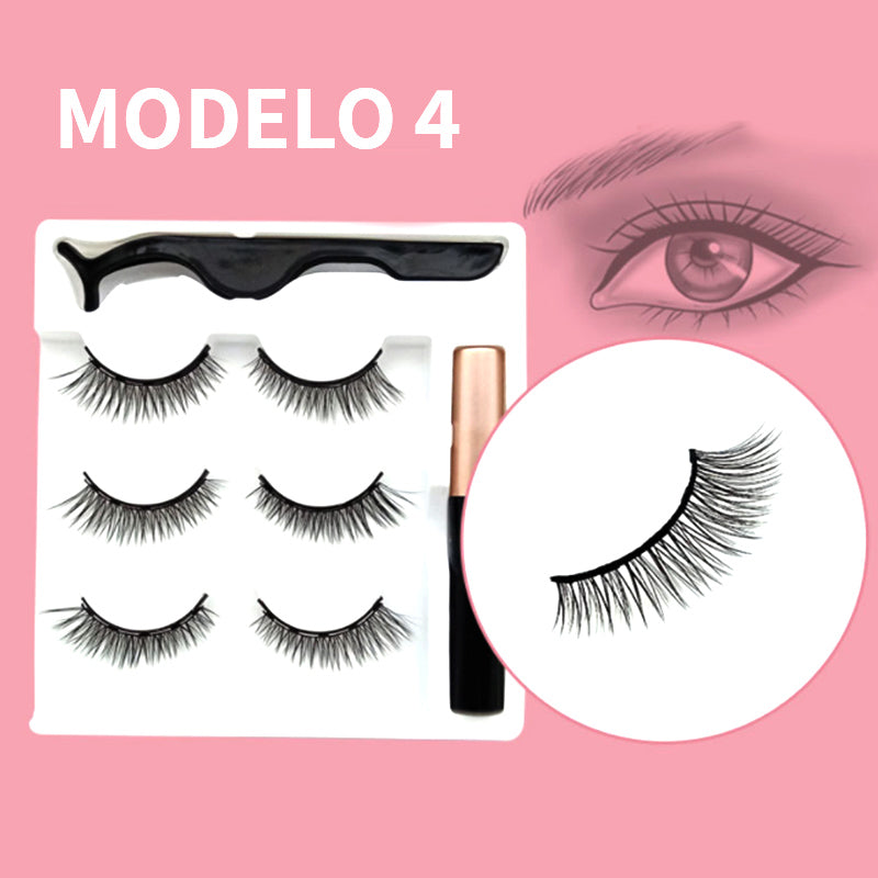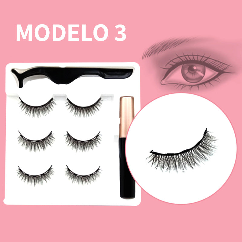- 3 pares de Cílios, Pinça, Delineador Magnético