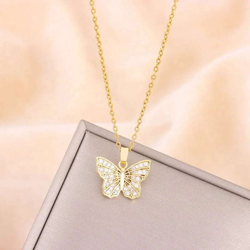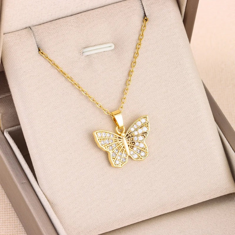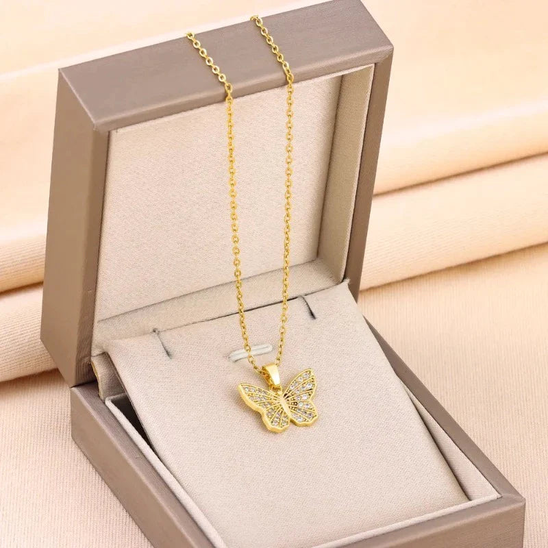 O Colar Borboleta Dourada é uma peça de joalheria deslumbrante que celebra a beleza efêmera e transformadora das borboletas.