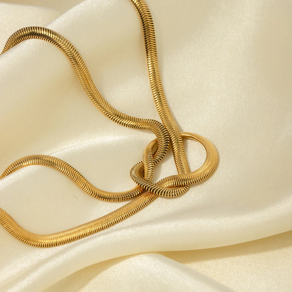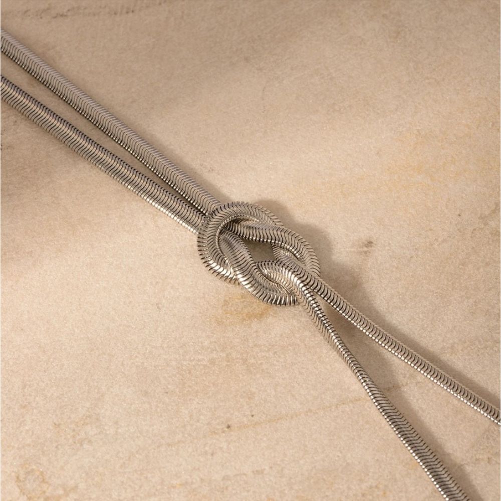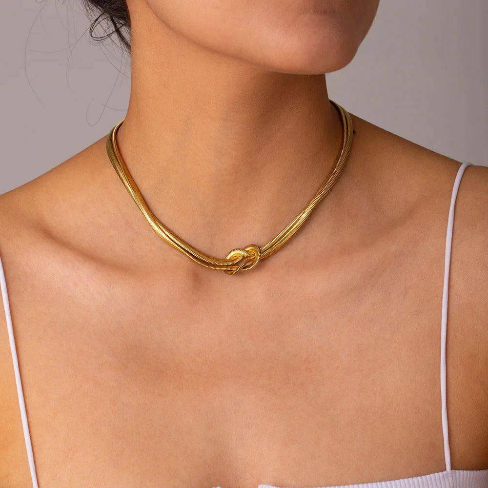 O Colar com Nó Traçado é uma peça de joalheria que destaca um design elegante e minimalista. Apresentando um nó traçado, esta joia oferece um toque de sofisticação com sua simplicidade refinada. Ideal para quem aprecia acessórios discretos e atemporais, o Colar com Nó Traçado é versátil e pode ser usado em diversas ocasiões, proporcionando um visual moderno e estiloso. Hipoalergênico livre de níquel e chumbo.