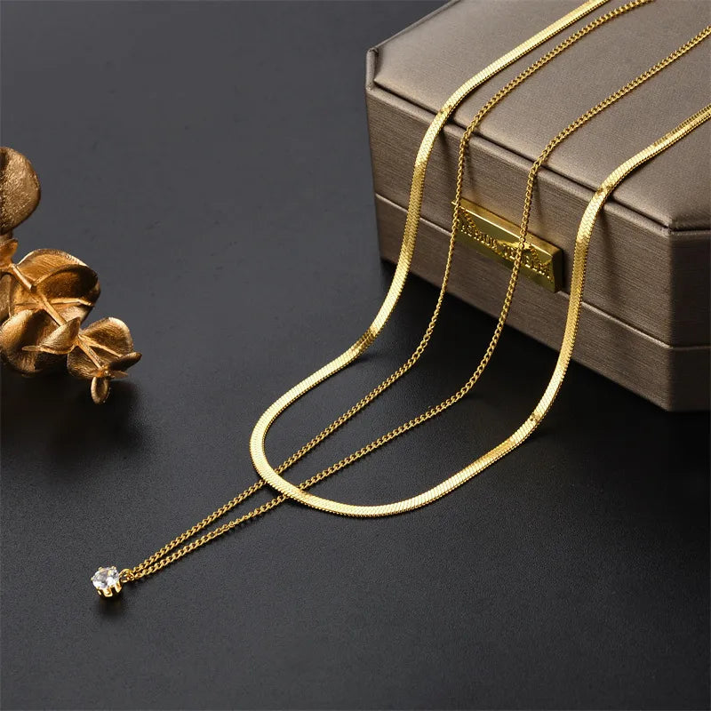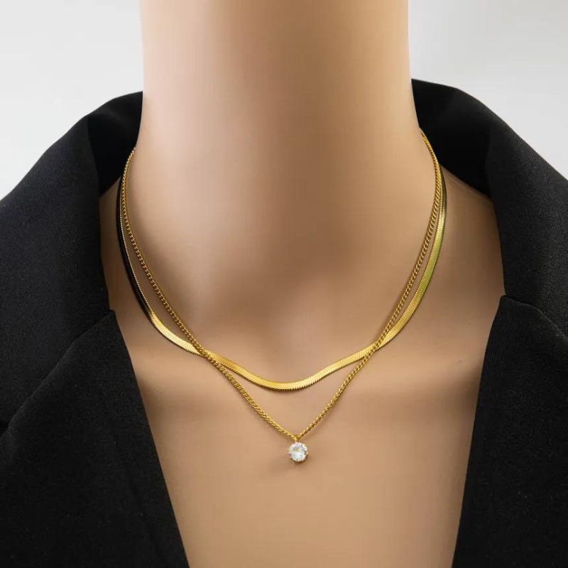 O Colar Duplo com Zircônia é uma joia deslumbrante que combina a elegância da dupla corrente com o brilho cintilante das zircônias, criando uma peça que é ao mesmo tempo sofisticada e encantadora.