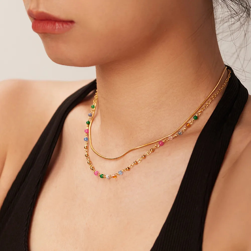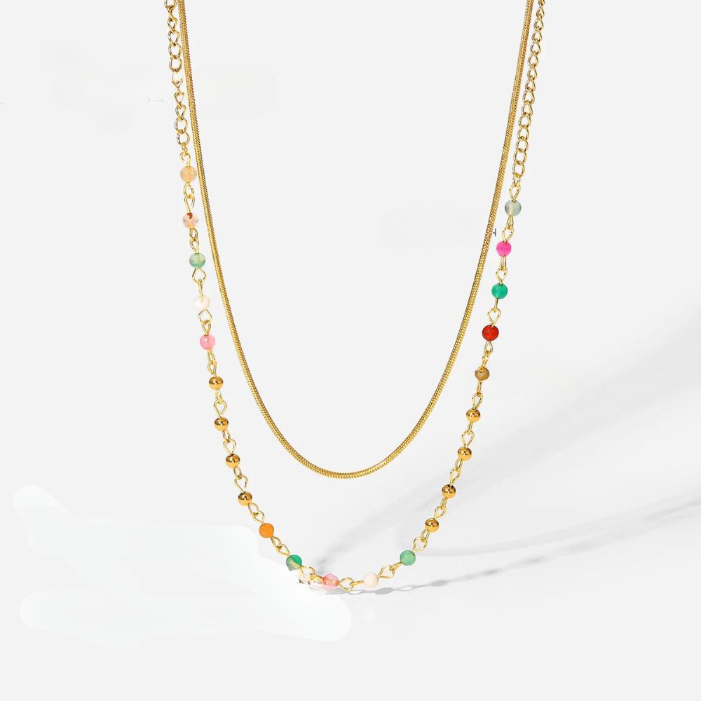 Um Colar Mix Colorido Banhado a Ouro 18K é uma peça vibrante e estilosa que apresenta uma variedade de cores em um banho de ouro 18 quilates. Este colar colorido combina elegância com um toque de diversidade, tornando-se uma escolha alegre e moderna para complementar diferentes looks. A combinação de tonalidades variadas e o brilho do banho de ouro proporcionam um visual sofisticado e atraente. Hipoalergênico livre de níquel e chumbo.