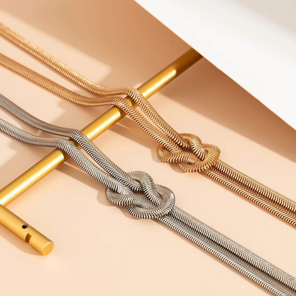 O Colar Nó Traçado Banhado a Ouro é uma joia deslumbrante que combina um design elegante com o brilho sofisticado do ouro. Este colar é uma interpretação única do clássico nó, que simboliza a união e a eternidade.