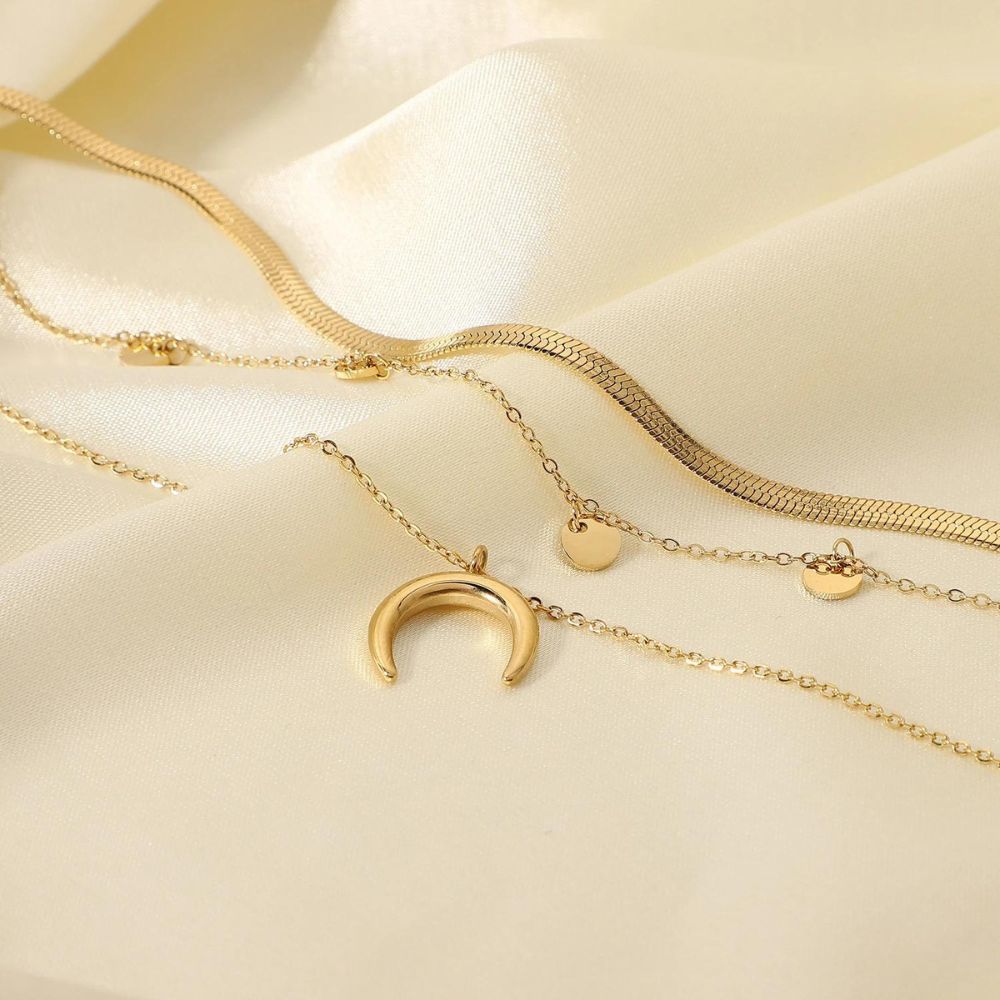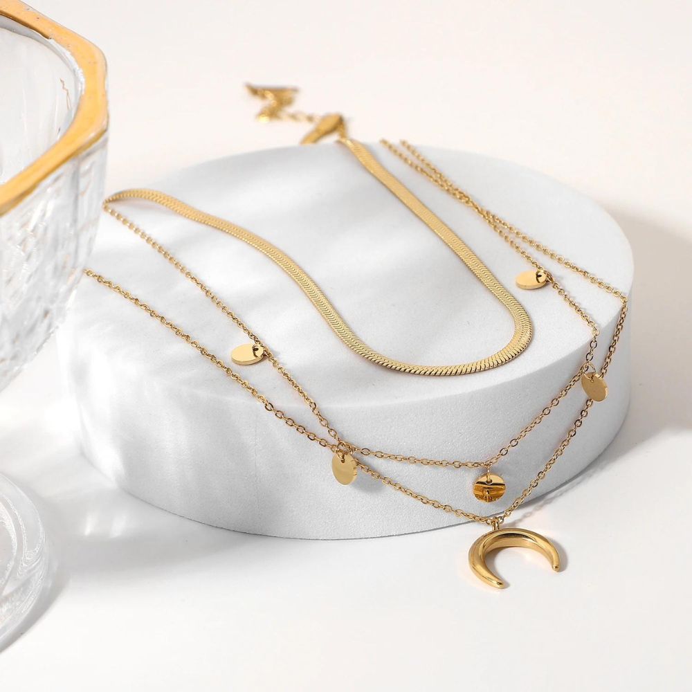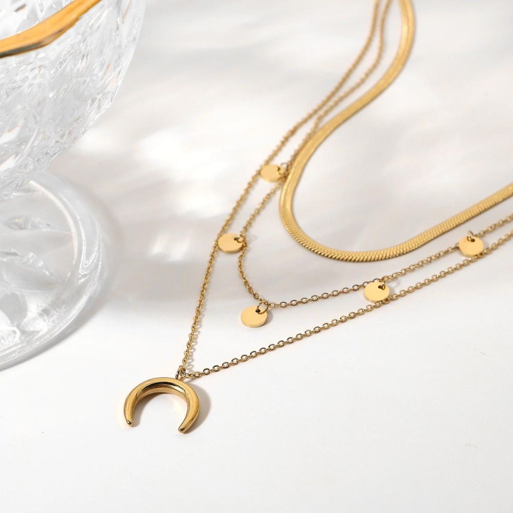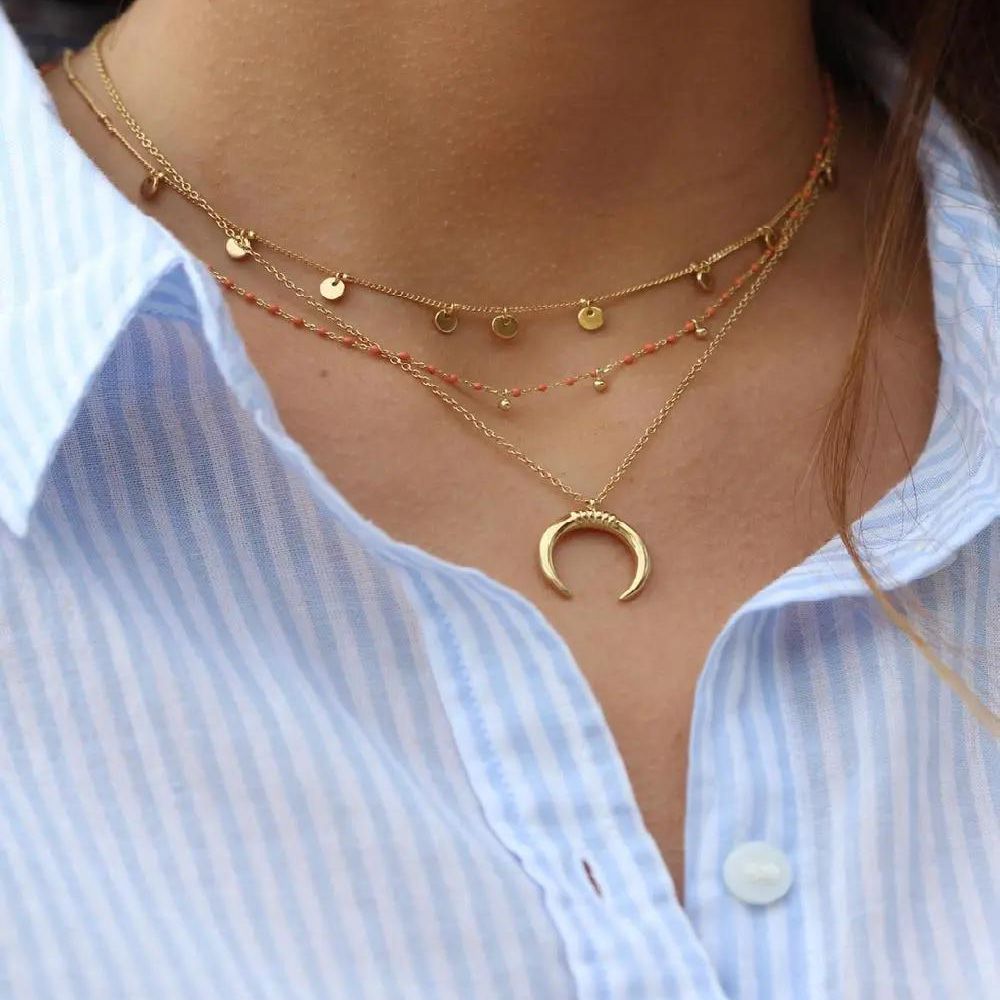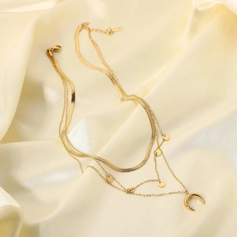 O Colar Triplo com Pingente de Lua é uma peça encantadora que combina moda e simbolismo. Composto por três fios distintos, este colar apresenta pingentes em forma de lua, evocando uma aura celestial. O design triplo adiciona camadas de interesse, enquanto a lua confere um toque romântico à peça. Ideal para quem busca um acessório delicado e cheio de significado, o Colar Triplo com pingente de Lua é uma escolha encantadora para diversos benefícios. Hipoalergênico livre de níquel e chumbo.