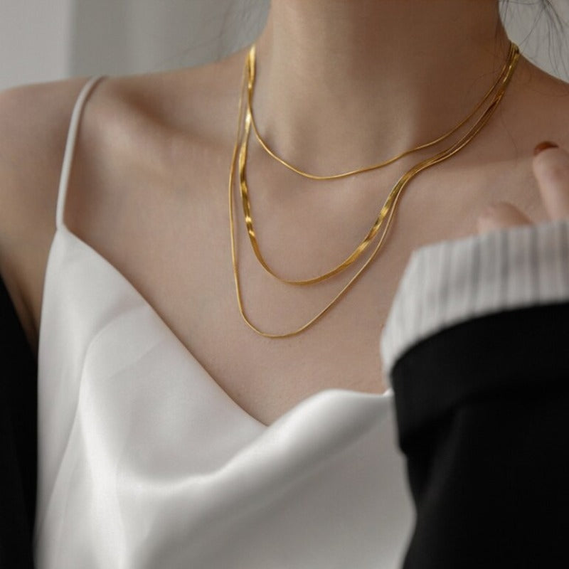 O Colar Triplo Minimalista é uma joia que combina simplicidade e estilo em uma única peça. Seu design elegante apresenta três delicadas correntes, cada uma com seu próprio pingente minimalista, criando uma composição equilibrada e sofisticada.