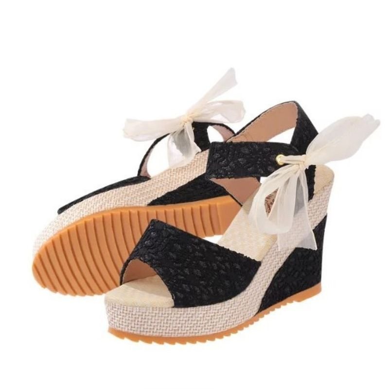 ✔ Versatilidade: Apesar de ser uma sandália mais elegante, a plataforma e o laço lateral permitem versatilidade no uso. É possível combiná-la com diversos estilos de roupa, desde vestidos mais formais até jeans e peças casuais, agregando um toque refinado a qualquer conjunto.